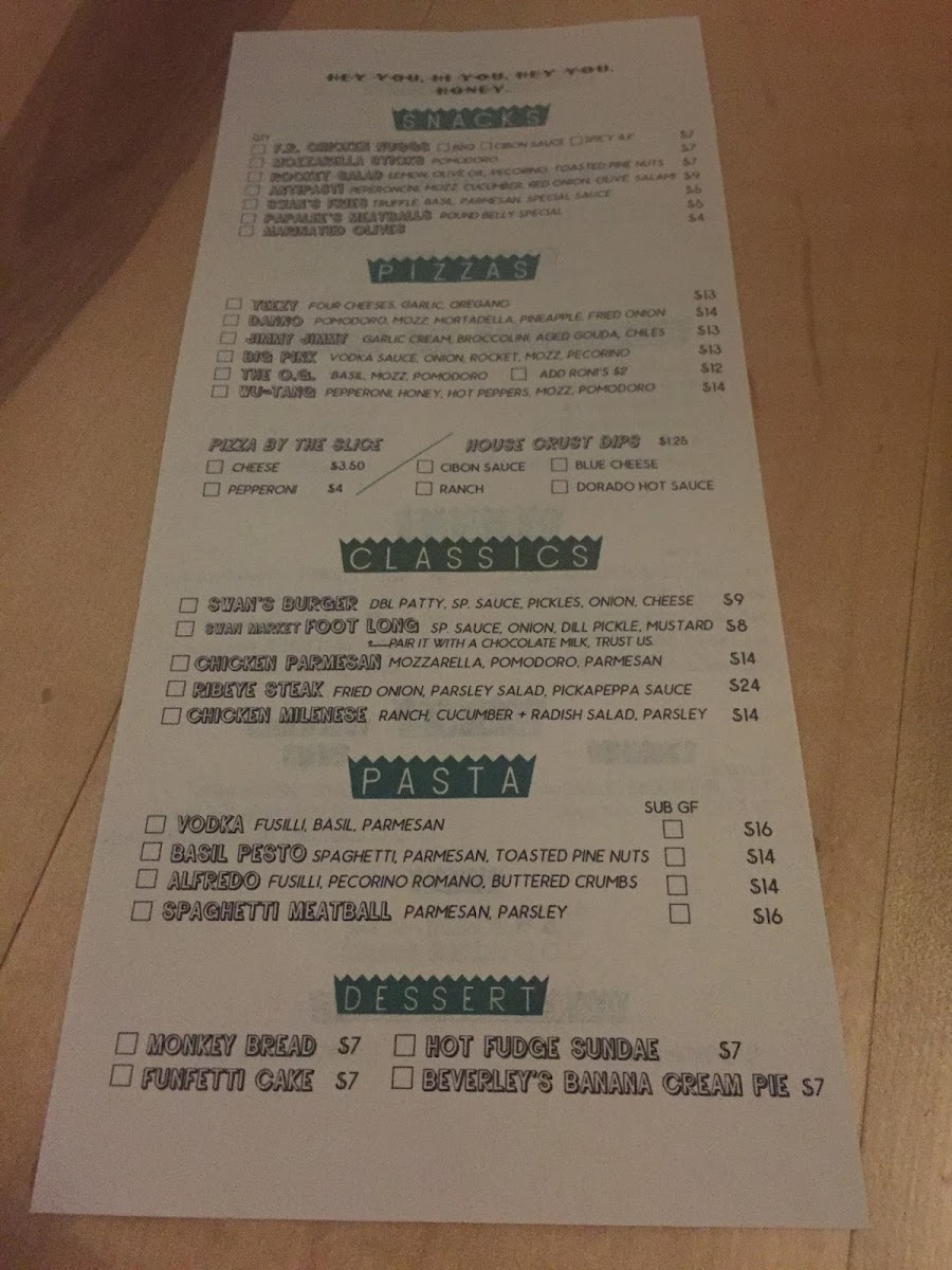 The menu features delightful options, including a range of crust dips like Hot Honey and Buffalo Spicy A.F., each priced at just $2.00, perfect for enhancing your meal. Don't miss their standout dishes, like the famous soy-ginger wings that receive rave reviews for their perfect fry and customizable sauces delivered on the side.
